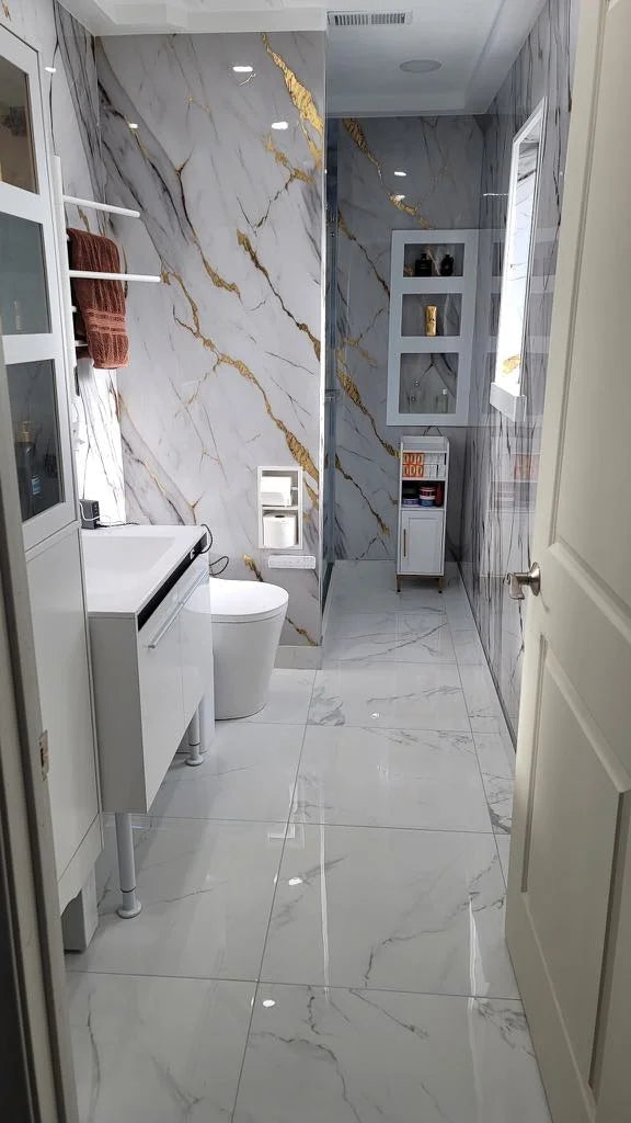Marble PVC Wall Panels – Elegant & DurableTransform your living or commercial space with our premium PVC Marble Wall Panels. These Calacatta White Marble PVC Wall Panels offer an elegant and durable solution for indoor wall decoration. Designed to be waterproof and fireproof, they are perfect for home, office, bathroom, and restaurant interiors.
