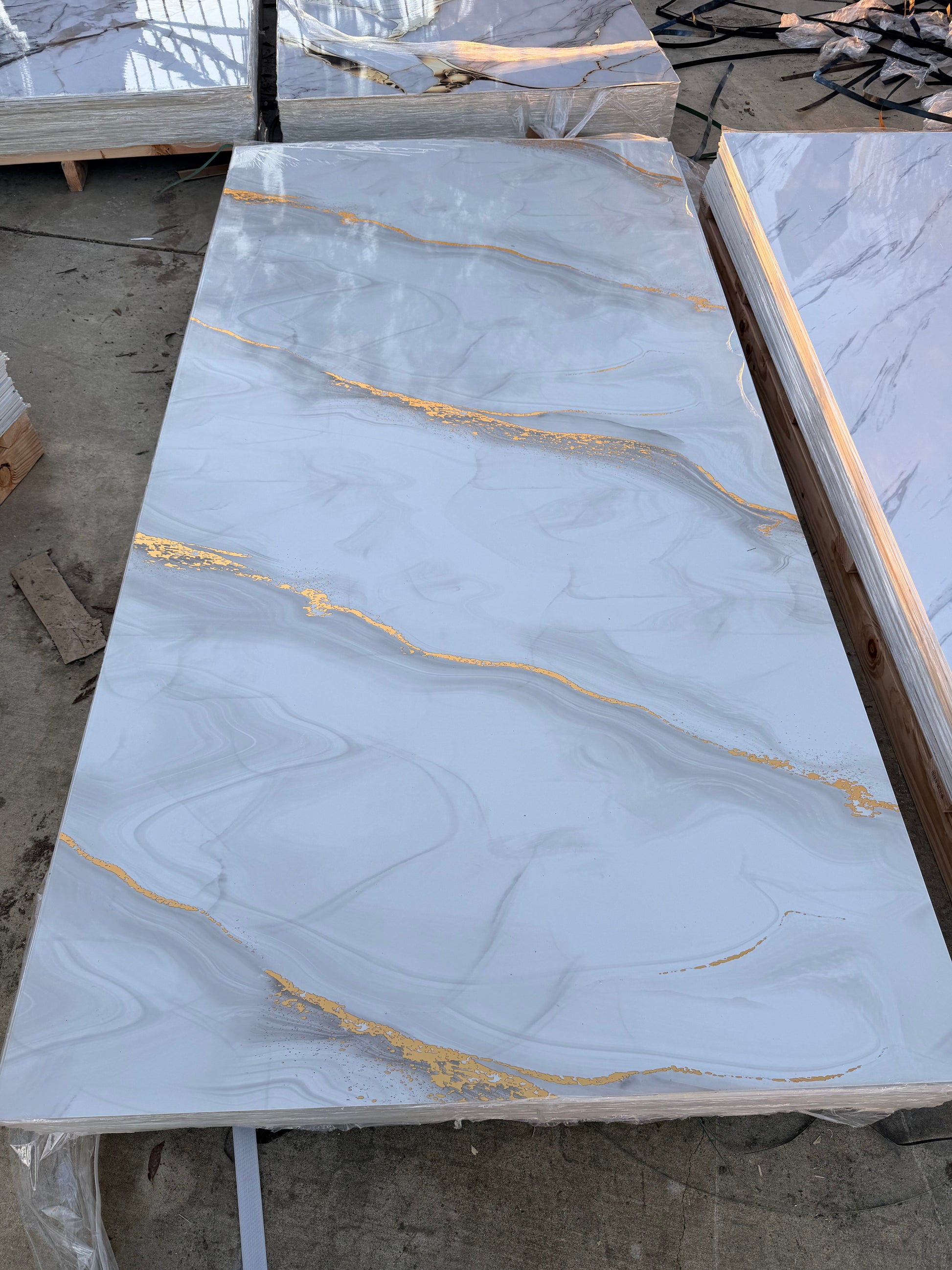 Marble PVC Wall Panels – Elegant & DurableTransform your living or commercial space with our premium PVC Marble Wall Panels. These Calacatta White Marble PVC Wall Panels offer an elegant and durable solution for indoor wall decoration. Designed to be waterproof and fireproof, they are perfect for home, office, bathroom, and restaurant interiors.